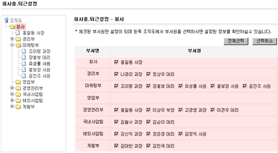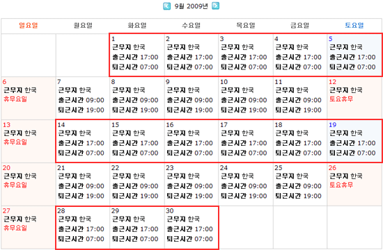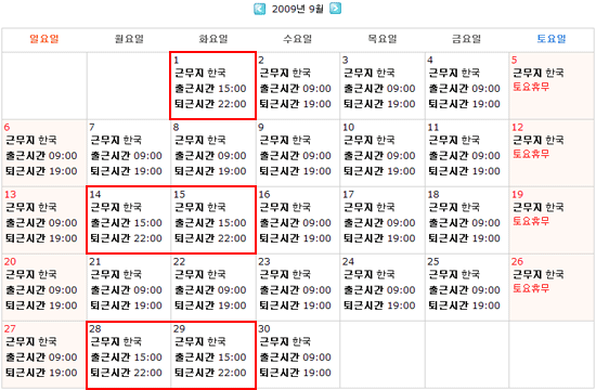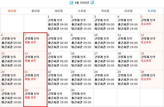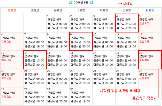 · 설명 : 원래는 휴무일이나 근무로 설정한 결과보기 |